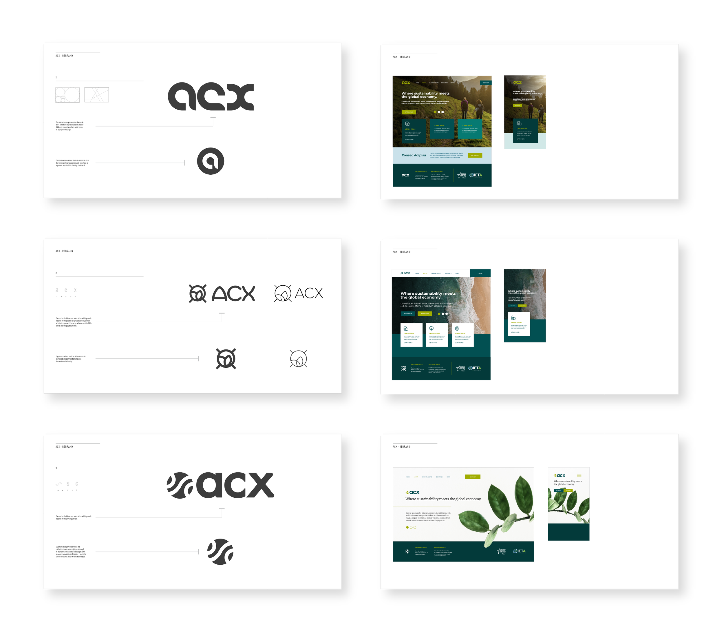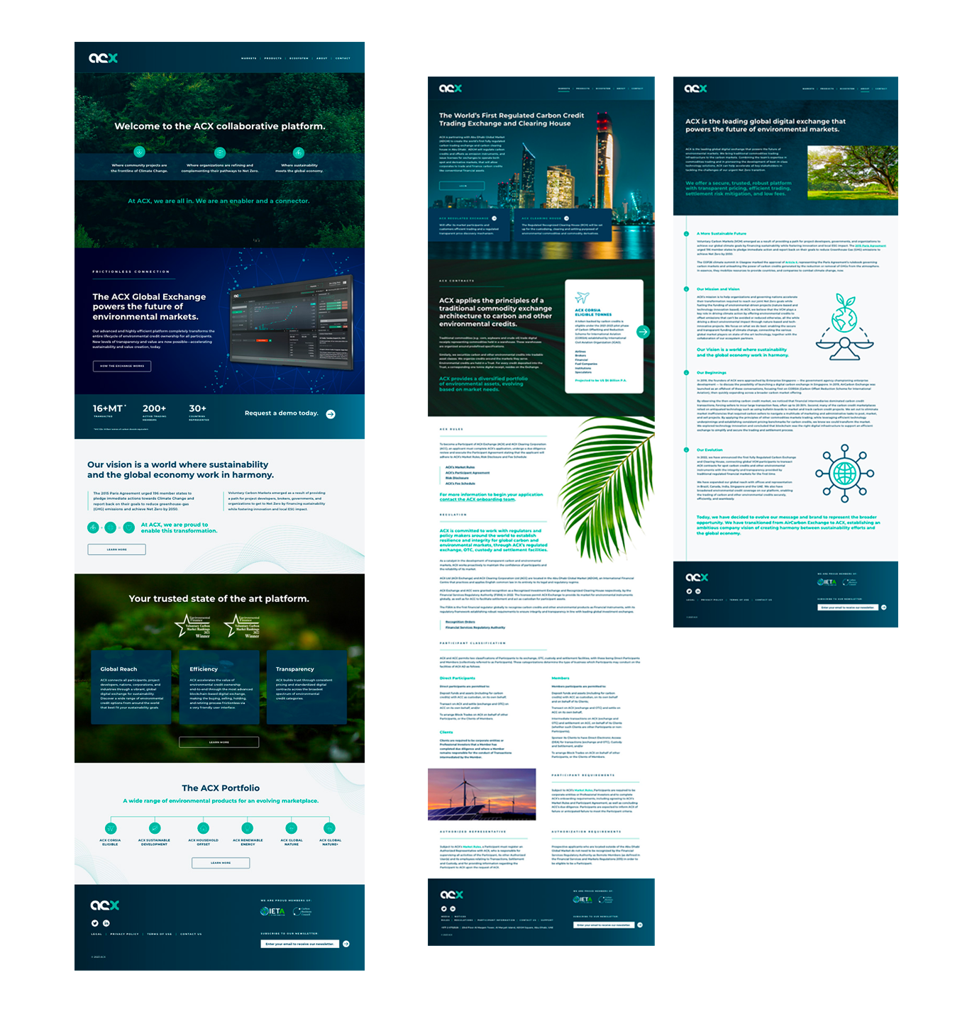 As the sole designer, I led the complete rebrand and website redesign for ACX, whose existing identity and digital presence no longer reflected their global ambitions. I developed a new logo, established a comprehensive identity system, and created a full style guide to ensure consistency across all touchpoints. I also designed and directed the new website, introducing a modern, sophisticated visual language that elevated the brand’s credibility and reflected its leadership in the environmental markets space.