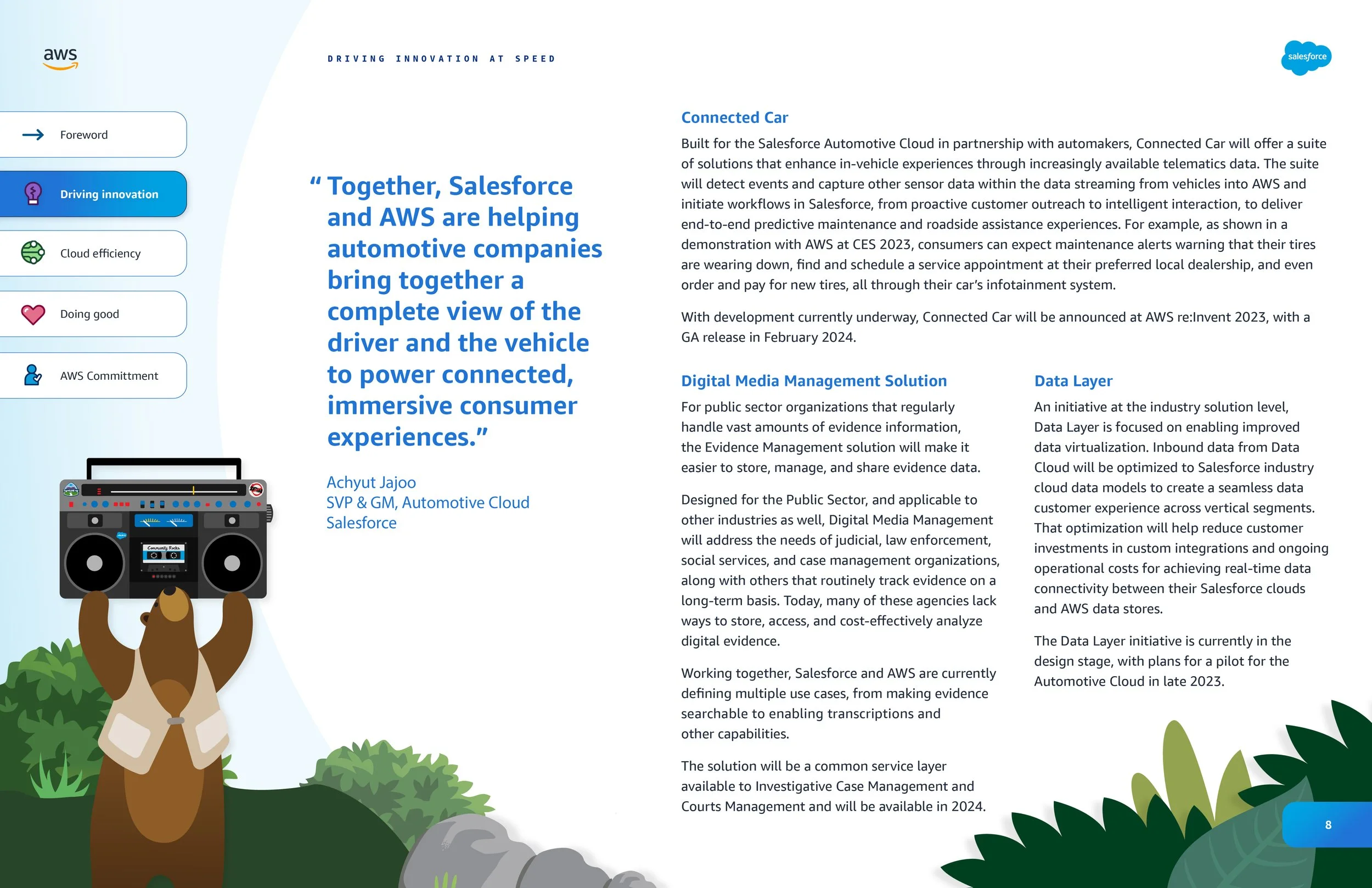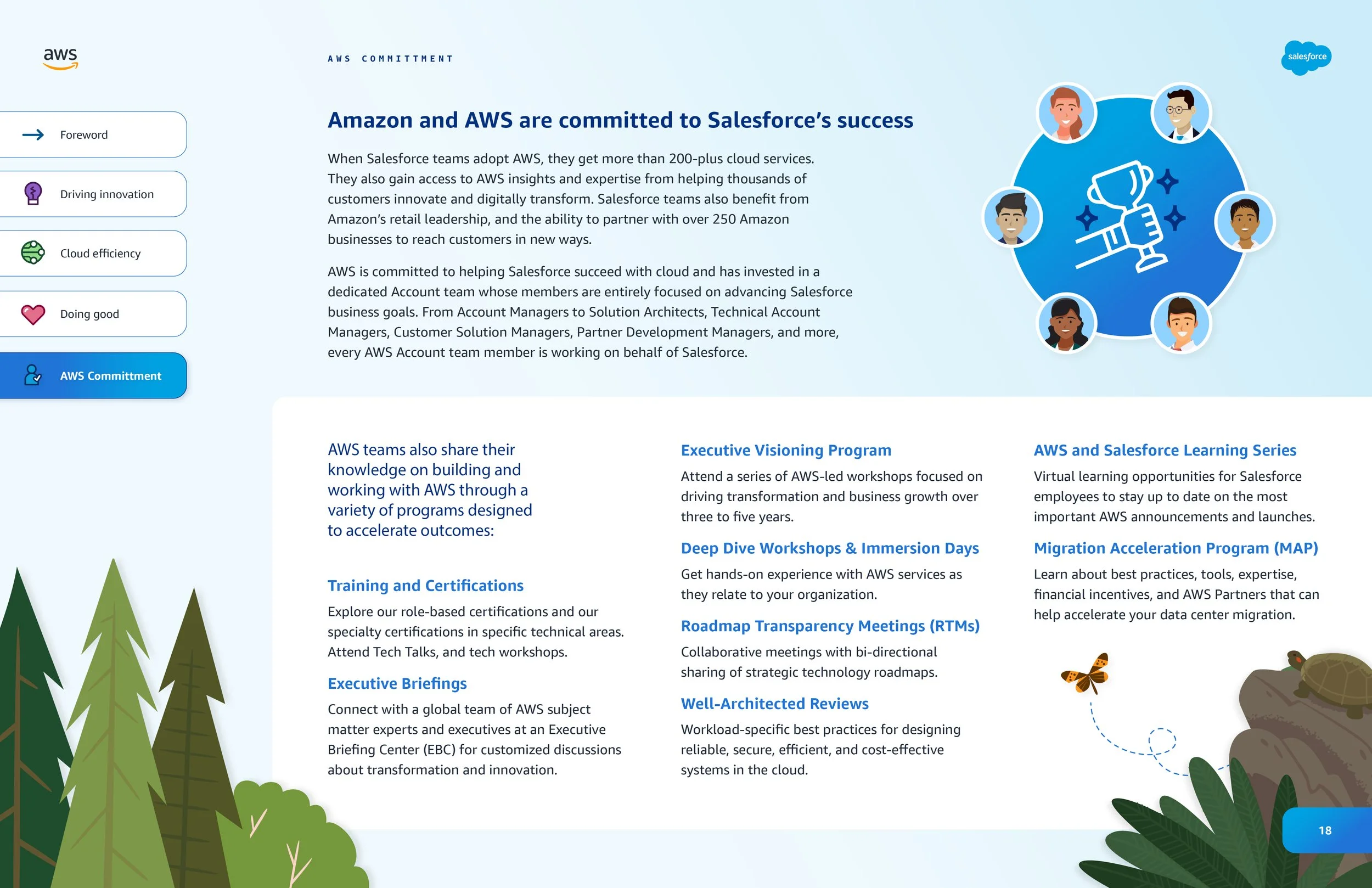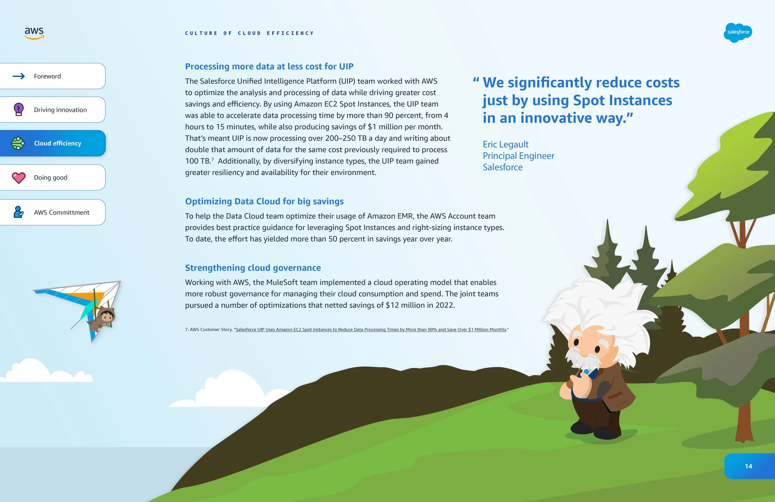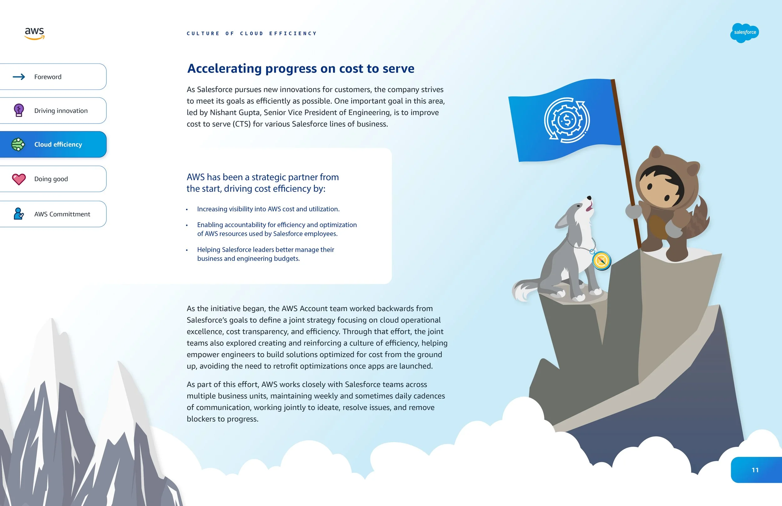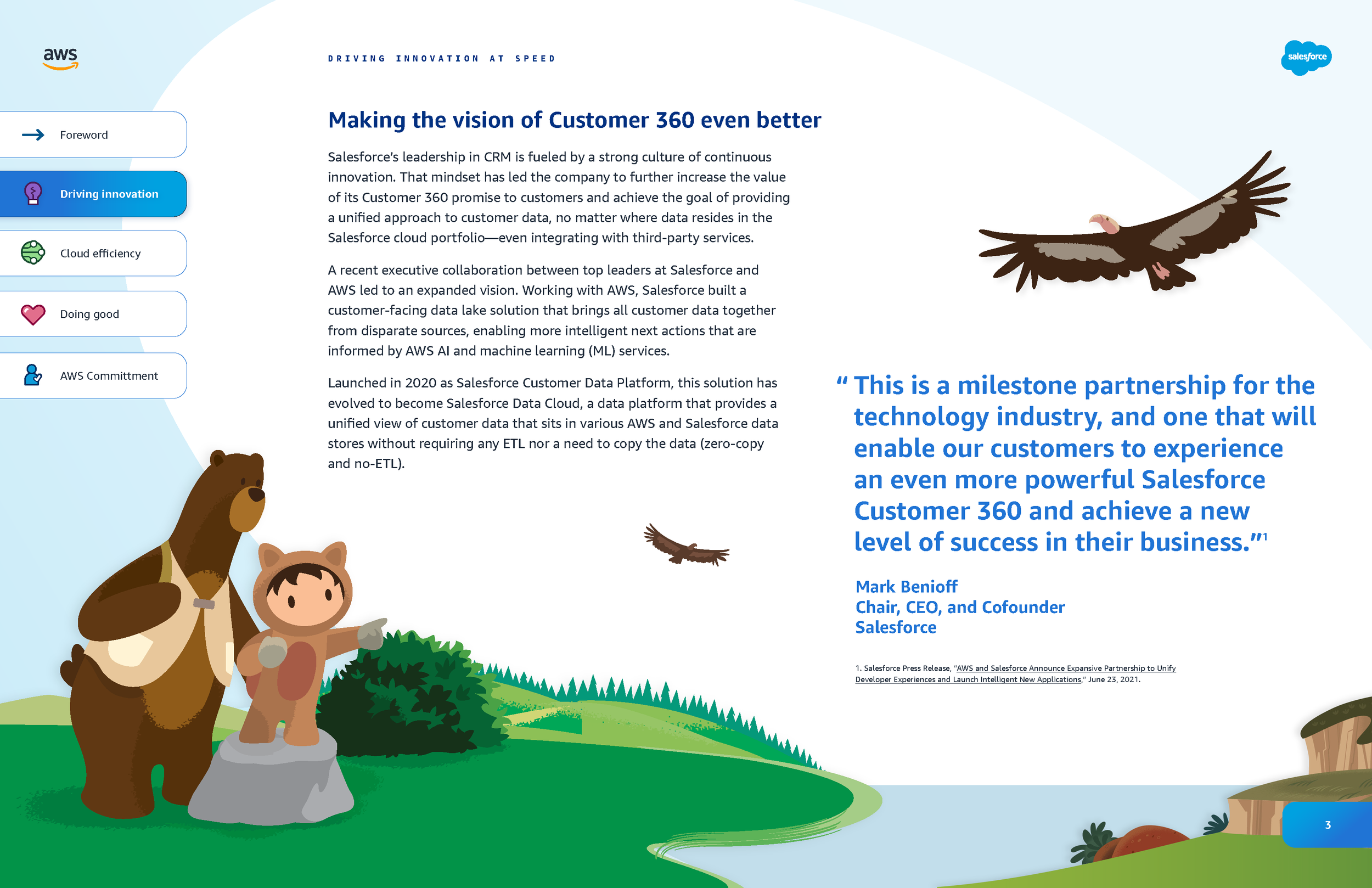 I created a co-branded eBook for AWS and Salesforce, navigating the challenge of merging two highly distinct brand identities. The design needed to lead with Salesforce’s bold, illustration-driven style featuring their recognizable character artwork while still aligning with AWS’s clean, minimal aesthetic. I developed a visual framework that allowed Salesforce’s expressive imagery to take center stage, anchored by AWS’s structured layout and typography to maintain balance and clarity. The result seamlessly blended the two brands into a cohesive, visually engaging narrative.