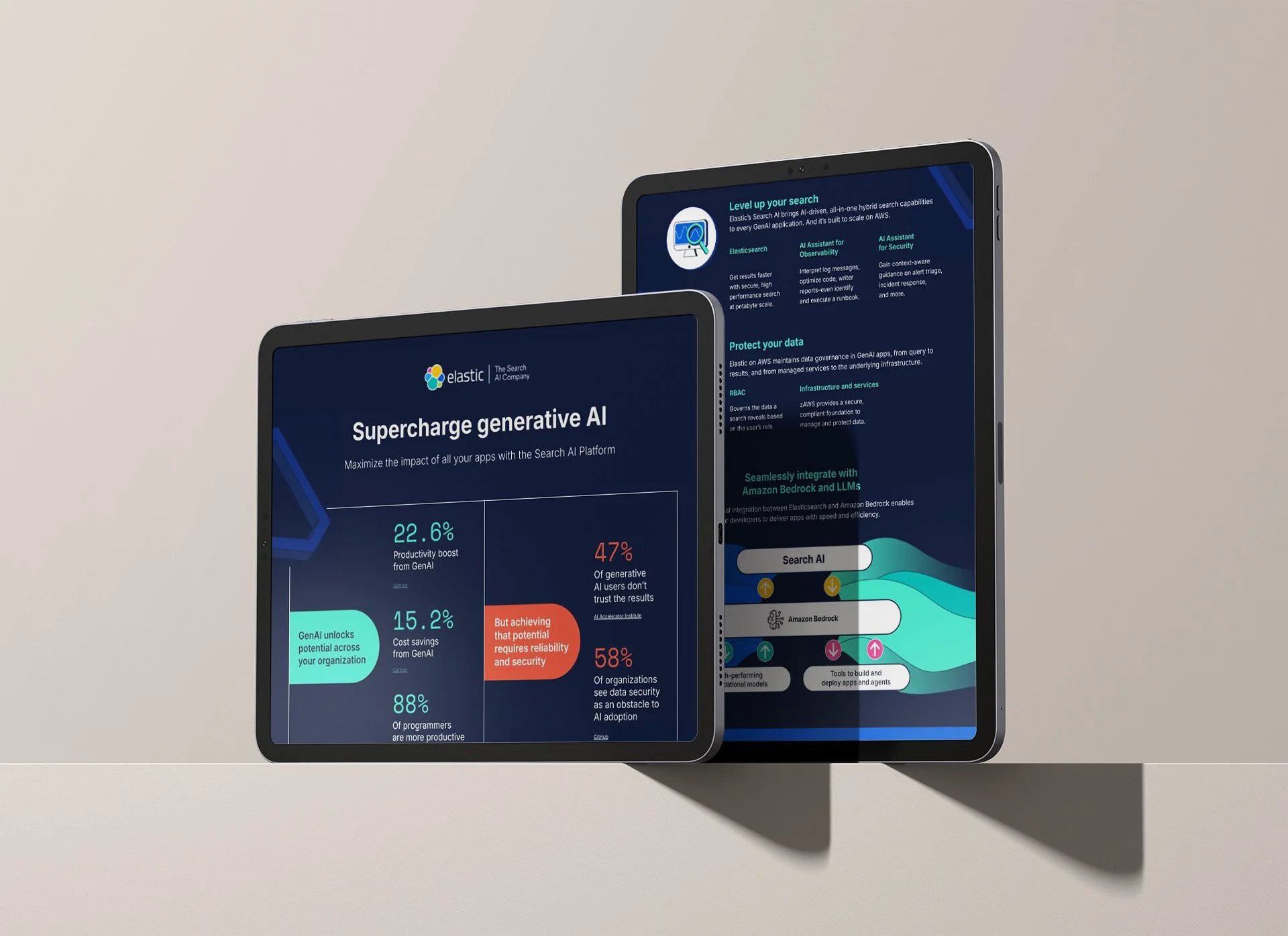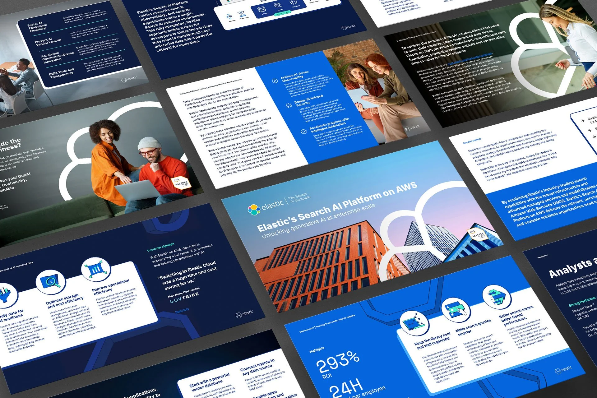 For Elastic, I designed an eBook, two infographics, and two data sheets promoting the capabilities of Elastic’s Search AI Platform on AWS. These assets played a key role in championing the brand’s recent refresh and its new identity of “bold minimalism”. The visual system emphasized clarity, scalability, and precision, reflecting the product’s technical sophistication and seamless integration with AWS. Each asset distilled complex messaging into a cohesive and approachable narrative, positioning Elastic as a trusted partner for organizations advancing their AI strategy.